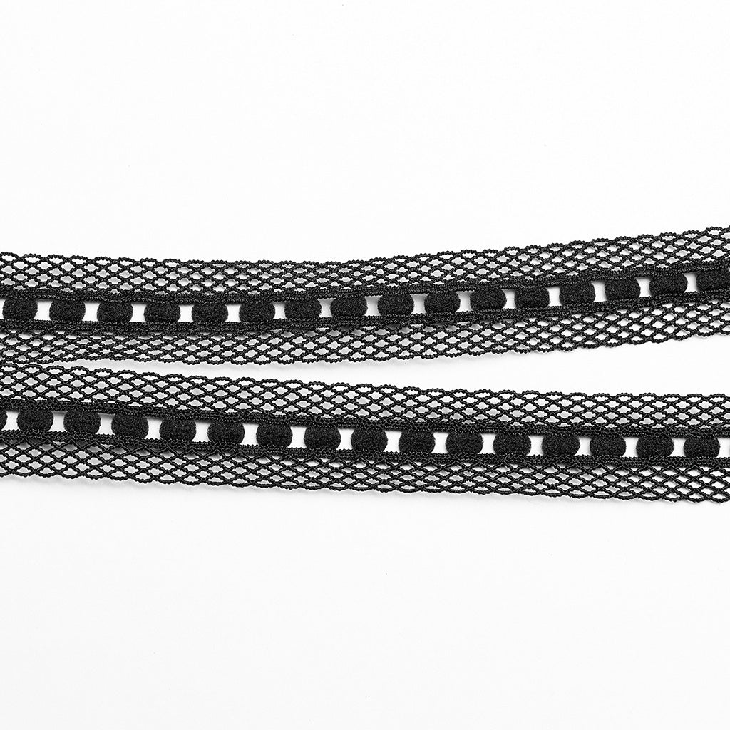 2. Fine welt lace,the webbing extending from both sides of the faux feather straps is knotted in the middle of the back