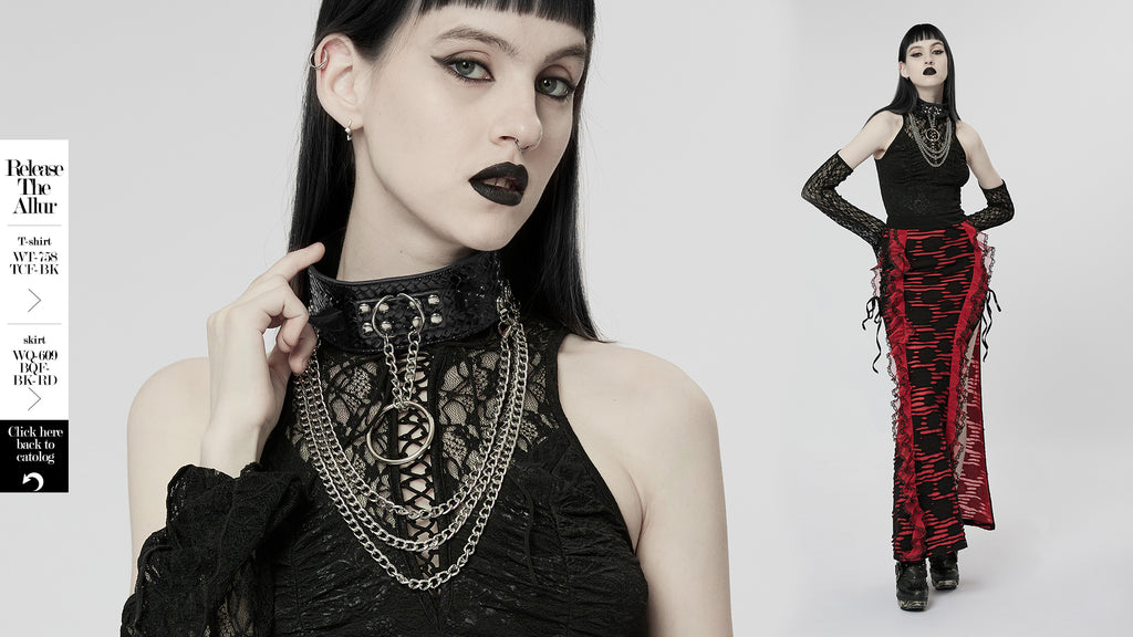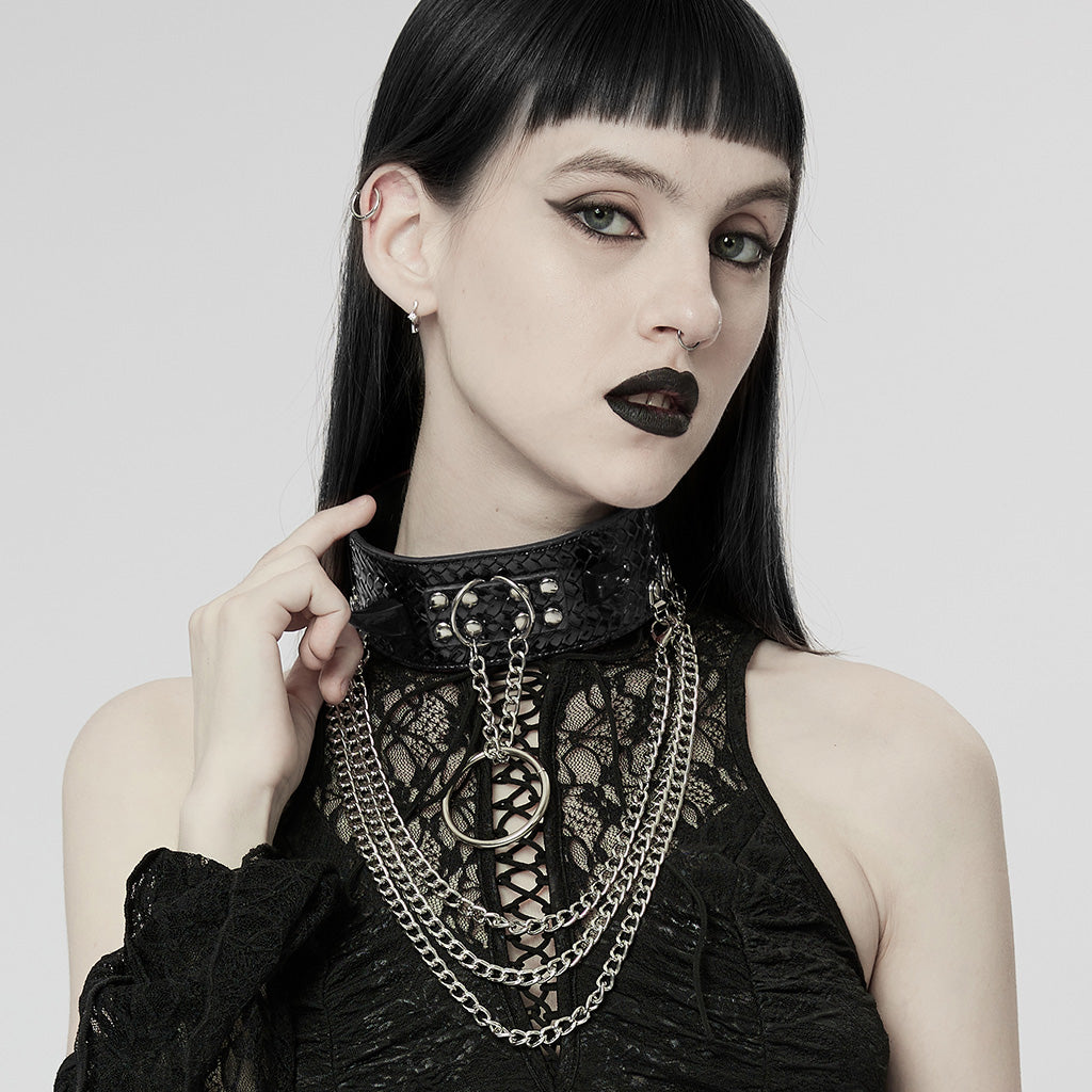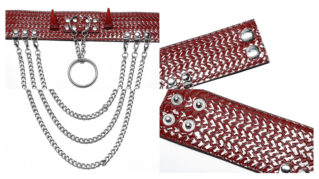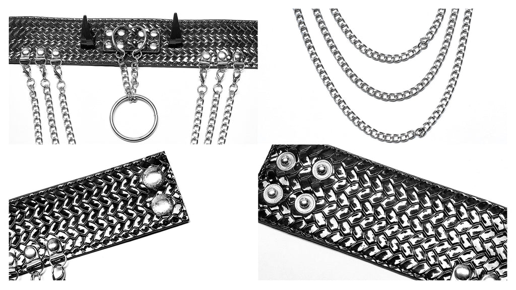 3. Unique rivets and suspended chain at center-front for decoration. The front chain is equipped with lobster clasp for easy installation and removal