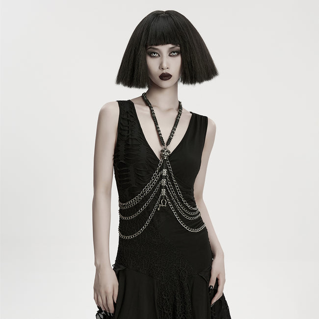 Punk Bat Bow Skull Chest Chain$75.00