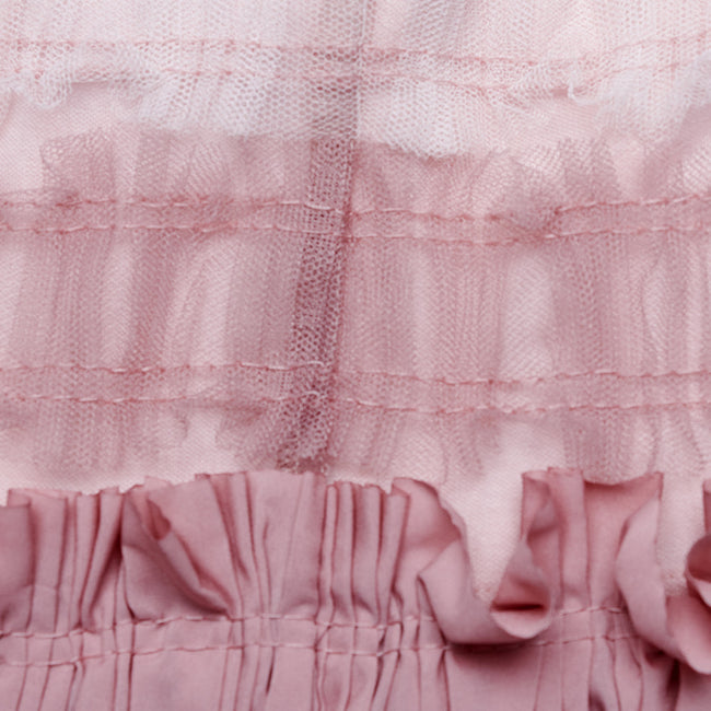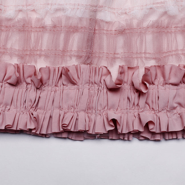 1. Made of ruffled mesh fabric and elastic knitted fabric