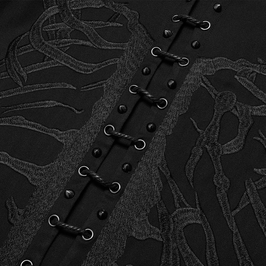 2.The back has exquisite skeleton embroidery and hardware decoration.