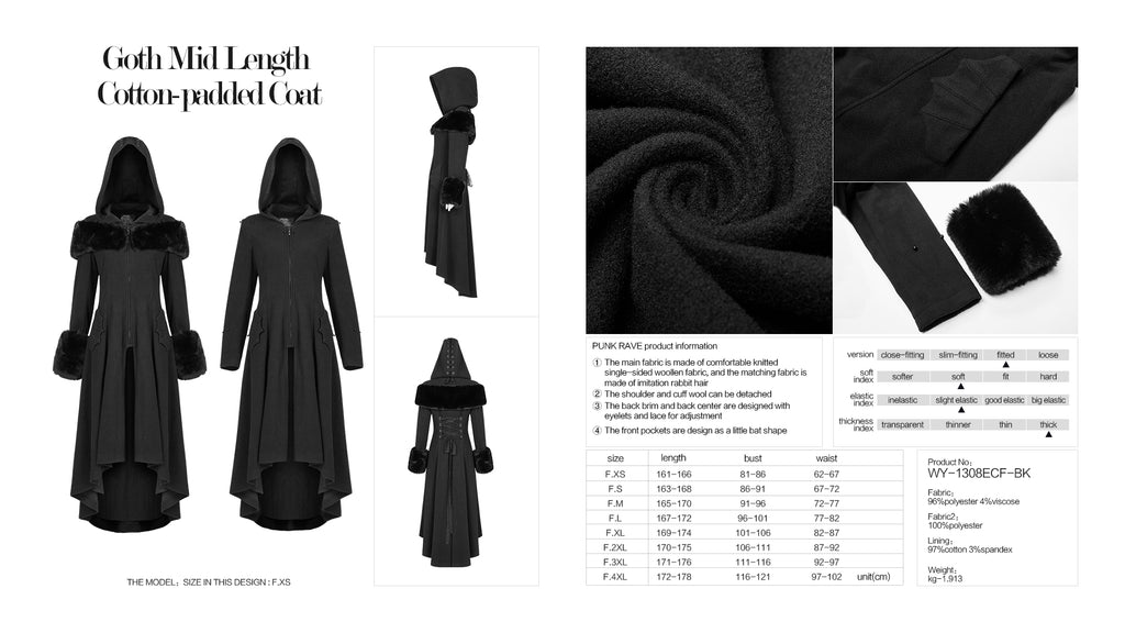 Goth Mid Length Cotton-padded Coat