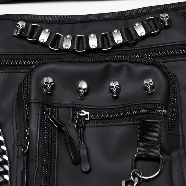 2. Dark rivet skull waist bag with an adjustable belt.