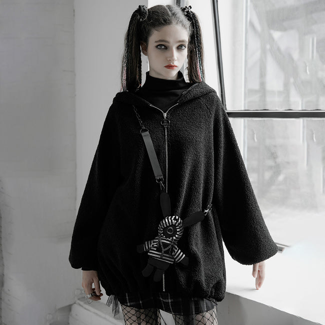 Velvet clown hat backpack doll Medium-length coat